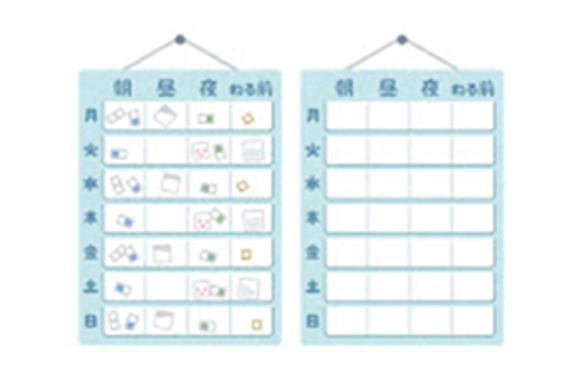 A4:薬剤師が残っている薬を数えて、次の診察時までにどの薬がどのくらい必要なのかを医師へ伝えます。また薬の内容や生活パターンを見て適切な飲み方の提案を行います。「一包化」といって朝・昼・夕・寝る前ごとに薬をまとめて包むこともでき服用する日付を入れる事もできます。飲んだことが分かりやすいように「お薬カレンダー」等を提案することもあります。